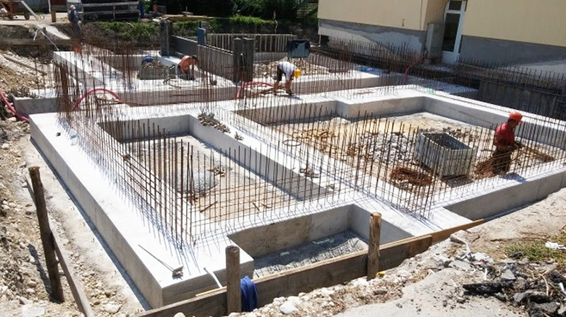 Gradbinci so po končanju del arheologov, dodatno poglobili gradbeno jamo, izvedli tamponsko gradbeno blazino debeline 0,5 m, naredili podložni beton temeljev in AB temelje. Sedaj je na vrsti gramozni nasip med temelji, izdelava kanalizacije med temelji ter izdelava podložnega betona pod tlakom kleti. Terminski plan gradnje je izdelava AB sten kleti do 20.8.2016 ter plošče nad kletjo do 31.8.2016.