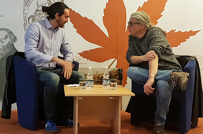 Na pogovor iz cikla Čudno vprašanje, je Noah Charney v sredo, 19. aprila 2017, v Knjižnico Franceta Balantiča v Kamniku, povabil znanega slovenskega publicista, filmskega kritika in televizijskega voditelja, Marcela Štefančiča Jr.