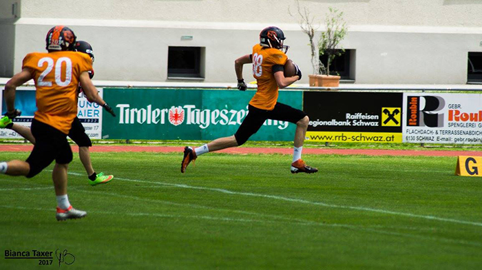 V soboto, 1. 7. 2017 so se Domžalski Tigri odpravili na gostovanje v avstrijski Schwaz, kjer so igrali tekmo proti tamkajšnjim Hammersom. Tekmo smo otvorili, tako kot smo načrtovali. Z dvema zaključenima podajama na naše lovilce je akcijo zaključil Luka Kotnik s podajo na Matica Rutarja (7:0). na vrsto je prišla obramba, v parih napadih so ustavili Hammerse. Tako so dali možnost napadu Tigrov za nove točke. Klemen Svetlin je ponovno dominiral in tako v prvi in drugi četrtini dvakrat pritekel v končno cono (20:6). Nato so domači strnili obrambo, našim pa se je nekaj iger zalomilo. Tako so domači v drugi polčas prišli z izenačenim rezultatom (20:20). Tretja četrtina je bila šok, nikakor niso sestavili napada in obrambe. Majhne napake so terjale svoj davek in tako so Hammersi povedli z dvema touchdownoma razlike (20:34). Novo upanje nam je ulil Luka Kotnik z vračanjem žoge v končno cono (27:34). Za konec pa so domači dosegli še en touchdown in si tako zagotovili zmago (27:41).