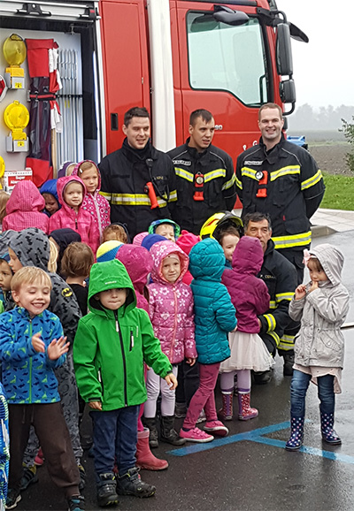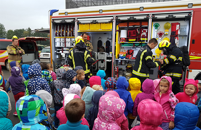 Kljub temu, da so nas spremljale kapljice dežja, so bili gasilci pripravljeni deliti svoje znanje gašenja, ponovili smo klicno številko v primeru požara, kdo se nam oglasi in katere informacije potrebujejo, da lahko v najkrajšem možnem času prihitijo na prizorišče požara. Niso pa prisotni le ob požarih: potrebujemo jih ob poplavah, naravnih nesrečah, ob zdrsih, prometnih nesrečah, itd.