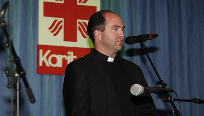Preden je nastopil ansambel Poljanšek, smo prisluhnili še domačemu župniku mag. Klemenu Svetelju, ki se je zahvalil voditeljici koncerta Mateji Feltrin Novljan in Janezu Kastelicu, za njun prispevek pri organizaciji koncerta. Ni mogel niti mimo pohval vseh sodelavcev župnijske karitas Domžale za njihovo neutrudno delo, s katerim lajšajo stisko pomoči potrebnim ljudem, ter vsem obiskovalcem, nastopajočim in donatorjem dobrodelnega koncerta za njihov prispevek k uspešnemu delu župnijske Karitas Domžale. Ne samo tisto, kar se vidi. Ne samo tisto, kar je opazno navzven. Ampak tudi tiste malenkosti, ki jih nikoli ni videti, nikoli ni opaziti ali slišati, pa vendar vemo, da so. Zato ohranimo odprto srce drug za drugega, tudi za vse tiste malenkosti, ki niso vidne, je zaključil svoj govor mag. Svetelj. Na začetku je dejal, da predolgi govori v cerkvi mnoge silijo na kašelj, a tokrat je bil zelo kratek, saj nihče ni niti pokašljeval, kaj šele kašljal. Koncert so poskočno zaključili člani ansambla Svetlin in tako navdali upanje za boljši jutri. Poleg številnih gostov je bil na koncertu prisoten tudi predsednik Slovenske Karitas Imre Jerebic.