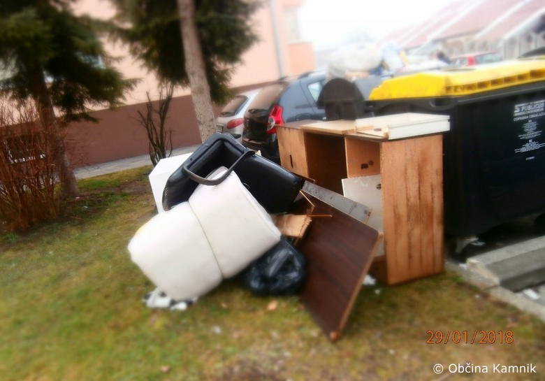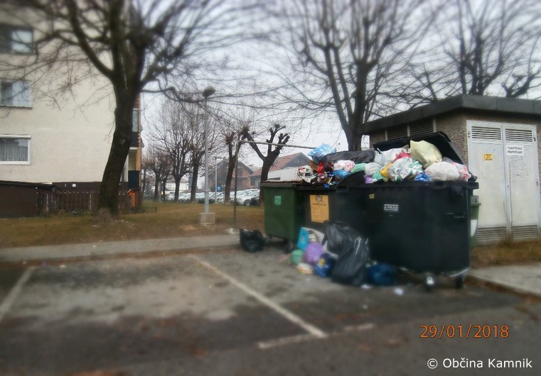 Na območju večstanovanjske gradnje v občini Kamnik je še vedno zaznati, da imetniki odpadkov v posode za ločeno zbiranje frakcij pogosto prepuščajo odpadke, ki niso namenjene tem odpadkov, v zabojnike za mešane komunalne odpadke odlagajo embalažo, bio odpadke, steklo, papir, zato prihaja do prenapolnjenosti zabojnikov za mešane komunalne odpadke, posledično pa se odpadki odlagajo poleg zabojnikov ter s tem onesnažujejo okolico prevzemnih mest. Pogosto prihaja tudi do nedovoljenega odlaganja kosovnih odpadkov na zbirno prevzemnih mestih, čeprav izvajalec javne službe zagotavlja prevzem kosovnih odpadkov na podlagi predloženih kuponov, dvakrat v koledarskem letu na vsakem prevzemnem mestu, brez dodatnega doplačila.