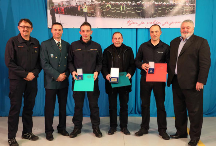 Preden se je slovesnost končala je povezovalka prebrala obrazložitve nagrad, ki so jih prejeli naši trije nagrajenci. Bronasti znak civilne zaščite je prejel Dejan Osolnik, ki že več let vestno in uspešno vodi enoto reševalnih psov v Kinološkem društvu Domžale. Po njegovi zaslugi smo v Domžalah ohranili odlično usposobljeno kinološko reševalno enoto, ki deluje v naši občini že več kot 25 let. Z vestnim in rednim opravljanjem svojih nalog pomembno prispeva k krepitvi in razvoju zaščitno-reševalnega sistema občine Domžale. Plaketo civilne zaščite je prejel Franc Anžin, ki je  23 let uspešno opravljal funkcijo poveljnika Civilne zaščite v občini Domžale. Po prenehanju teh nalog pa še vedno sodeluje z Občino Domžale in Občinskim štabom CZ pri  izvedbi, ocenjevanju in analizi vseh zaščitno-reševalnih vaj. G. Anžin je bil v letu 2015 do sredine leta 2016 imenovan za VD direktorja novoustanovljenega  javnega zavoda Center za zaščito in reševanje Domžale, že pred tem pa je celo leto sodeloval pri pripravah na ustanovitev. Naloge v.d. direktorja je opravil odlično in tako omogočil, da se je v Občini Domžale nadaljevala 25-letna organizacija poklicnega gasilstva, ki ni pomembna samo za Občino Domžale, ampak tudi za celotno regijo. Na podlagi predloga MNZ, je srebrni znak civilne zaščite prejel Branko Sojer, ki je dolgoletni delavec Policije. Največji del dosedanje kariere je bil zaposlen v Centru za varovanje in zaščito, kjer je med izvajanji nalog varovanja najvišjih državnih predstavnikov in varovanih objektov in dogodkov pogosto sodeloval s predstavniki URSZR in predstavniki enot Zaščite reševanja in pomoči. Od februarja 2016 je Branko Sojer zaposlen v GPU Upravi uniformirane policije v Sektorju splošne policije, hkrati je predstavnik Policije v štabu CZ Republike Slovenije in kontaktna oseba za operativno sodelovanje z URSZR in posameznimi enotami, ki so vključene v sistem zaščite, reševanja in pomoči. Izpostavljene so tudi njegove aktivnosti na področju gasilskega delovanja v prostovoljnem gasilskem društvu v Ihanu in gasilski zvezi Domžale.