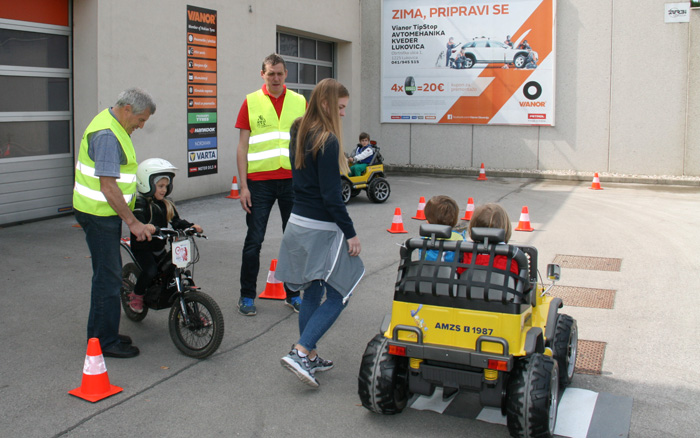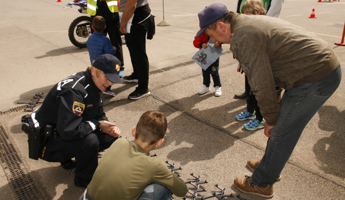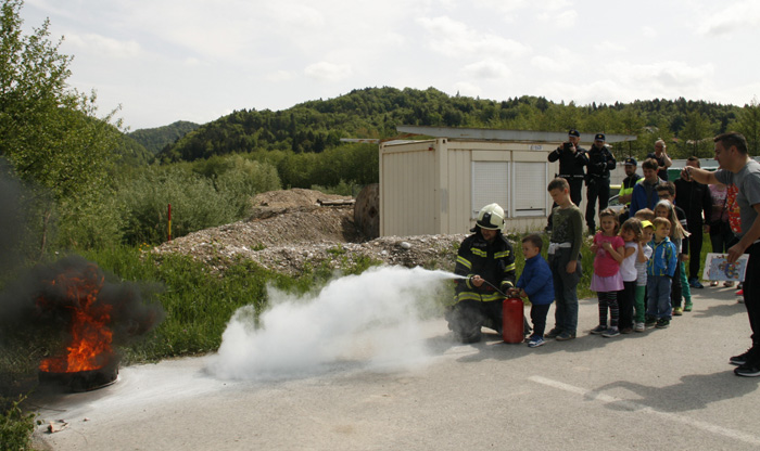 Svoje delo in pripomočke, ki jih uporabljajo pri delu so tako pokazali policisti, gasilci, ki so poleg opreme prikazali tudi gašenje požara z gasilnim aparatom na prah. A ne le pokazali, mlajši udeleženci so lahko z njim pogasili pravi požar. Za najmlajše je bilo poleg risanja v AMZS-jevem kotičku zanimivo še gašenje z vedrovko, bolje kako uspeti čim prej zadeti tarčo z curkom vode, ki ni vedno enak. A ne le to, ostala jim je še vožnja po poligonu z trial električnim motorjem, ali z avtomobilčki na električni pogon.