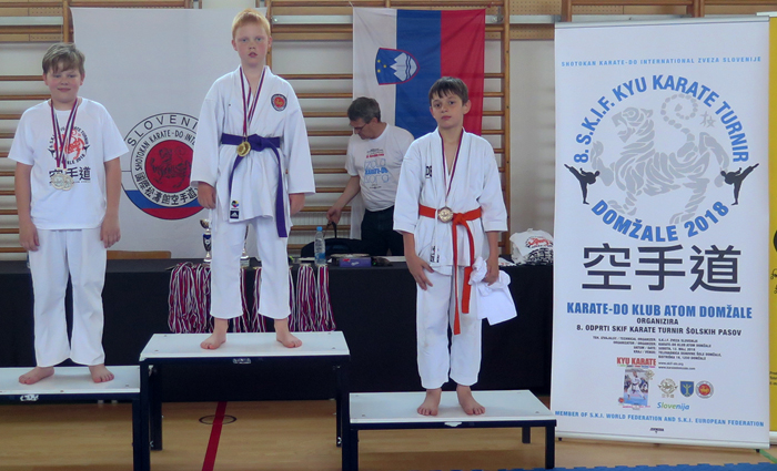 Karate-Do klub Atom Domžale, je v soboto 12. 5. 2018, uspešno organiziral in skupaj s SKIF zvezo Slovenije, izpeljal Karate turnir šolskih pasov, katerega so se udeležili klubi in društva različnih krajev Slovenije. Sodelovali so člani klubov: KK Emona Ljubljana, KK Zmaj Ljubljana, KK Funakoshi Gichin Ljubljana, KK Ronin Poljane, KK Tržič, KK Cankova, G. Petrovci, ŠKD Ruše, KK Tromeja Kuzma, Maribor – Kanazawa Dojo, ŠD Mokronog, KK Tanin Sevnica, KK Mislinja, Ig Shotokan, KK Bushido Moravče, SKIF Poljčane, KK Kobushi Kamnik, Atom Domžale.