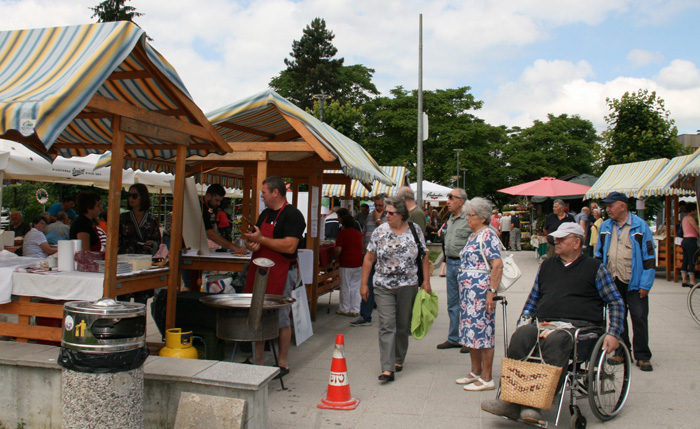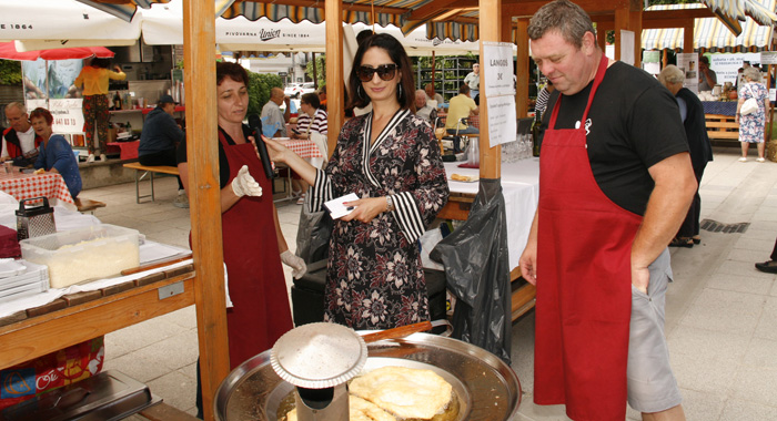 Čez stojnice z dobrotami iz tega konca naše domovine je obiskovalce vodila Veseljakinja Tanja Vidic Goršak, ki je kaj kmalu ugotovila, da je gibanica pošla, a da so ostale še druge dobrote. priznati moramo, da je najbolj poznana dobrote iz Prekmurja gibanica, a imajo še mnogo drugih dobrot in mednje zagotovo spada langaš, ki so ga pekli na stojnici in kot smo iz pogovora izvedeli je bil nekoč tudi sladek. Prekmurje je poznano tudi po lončenih izdelkih naj ob tem zapišem, da je Plečnik uporabil pri cerkvi v Bogojini tudi izdelke iz gline. In tudi lončene izdelke so prodajali na tržnici v soboto 26. maja. Ravnica ponuja mnogo, le obdelati jo je treba in to znajo tokratni gostje na domžalskem tržnem prostoru prav dobro saj so se predstavili z vrhunskimi in raznovrstnimi izdelki iz Prekmurja. Med drugim je bilo mogoče kupiti gibanice, ki so hitro pošle, prekmurske čokolade, hladno stiskana olja, likerje, žganje, vina, piškote, sveže ocvrti langoš in še veliko drugih specialitet in dobrot. Kupiti je bilo mogoče tudi lončene izdelke. To soboto so tržni utrip dvignili vrli Prekmurci in Prekmurke in ker je Prekmurje dežela termalnih zdravilišč bo kdo za dopust zavil tudi tja in mogoče obišče tudi katerega izmed razstavljalcev in prodajalcev v Domžalah. Sicer pa bomo več informacij o Prekmurju prejeli tudi v TIC Moravske Toplice, če nas pot le zanese v Prekmurje.