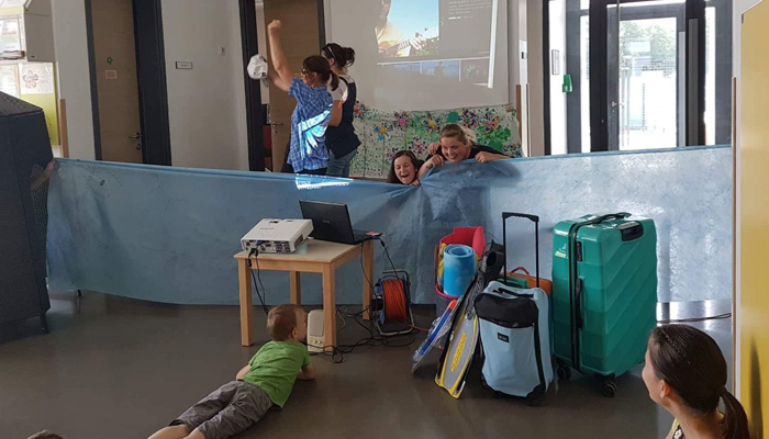 Strokovni delavci smo pristavili svoj piskerček s hudomušno dramsko igro v kateri je bilo videti prizor kako običajno pripravljamo v družini odhod na morje; malce nerodno, navihano, resno…
