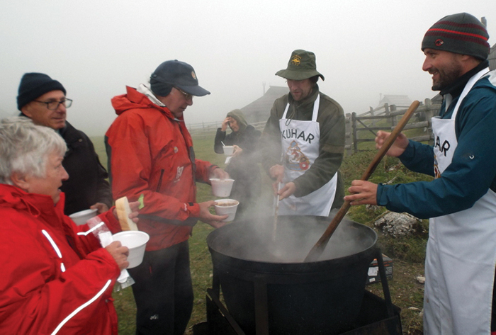 Ko se umaknejo megle, sonce čez hribček gre. In v soboto, 6. oktobra 2018, ob 11. uri, ko se prične Bajtarski praznik, se je Planina, zjutraj obdana s soncem, zavila v meglo, pa po golažu je že dišalo. Ekipa, zadolžena za kuhanje golaža, je že od ranega jutra v akciji. Veseli smo bili, da se Vas je toliko zbralo, da počastimo naš praznik.