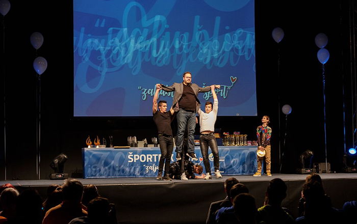 Že pred začetkom podeljevanja nagrad so se športni zaljubljenci lahko zabavali s poziranjem na rdeči preprogi in slikanjem ob živem kipu. Prireditev se je pričela z energičnim prepletom nastopov gimnastičarjev (brata Anže in Nejc), domžalskih Tigrov in plesalcev skupine Leaders Unified. Maja Keržič nas je presenetila z balkona in zapela himno, nastopile so neskončno prikupne mini navijačice Ladies minies, v rokenrolskih kitarskih ritmih sta nas ogrela Marko Kosanovič in njegov kitarski učitelj Miro Novak, s plesnim nastopom pa sta zaključila trikratna mladinska državna prvaka Maša Skočaj in Žiga Farkaš.