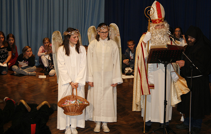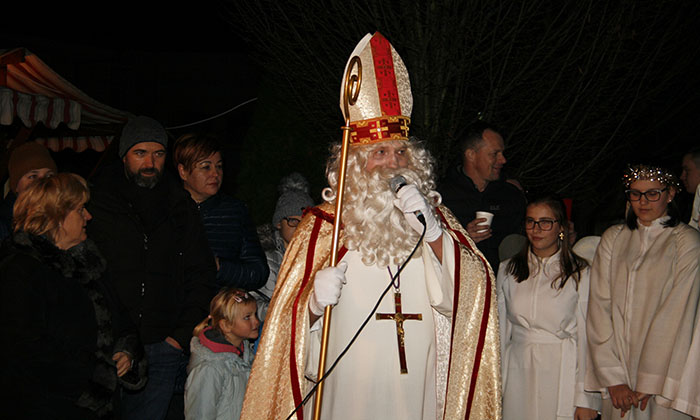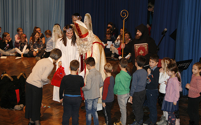 Tudi letos je prišel v Lukovico, in v kulturnem domu Janka Kersnika na predvečer svojega godu kar dvakrat obdaril otroke. Seveda so mu ob tem ob strani stali župnija Brdo in Zlato Polje, člani ter članice Karitas in občina Lukovica. In če breme priprave vsaj, kar se obdaritve tiče, nosijo Karitasovi sodelavci, za kulturni del poskrbijo animatorji in župnijski otroški pevski zbor. V krajšem kulturnem programu, oziroma bolje priprav na prihod svetega Miklavža, sodeluje otroški pevski zbor z neutrudno Petro Avbelj, in animatorska skupina, ki pripravi igrico. Letos smo si ogledali zanimivo zgodbo o parkljih, joj, bolje hudobcih, in angelih na drugi strani, ki so hoteli obdariti dobre in pridne otroke. In kdo je bil poraženec, se ve, saj so otroci darila dobili, čeravno je sveti Miklavž dejal, da je opazil , da so postali pridni šele zadnji mesec. A to je ugotovil že v preteklih letih. Na oder so prihajali najprej drugi razred še kar korajžno in potem prvi razred zelo plaho, nato pa ostali ob pomoči mamic in očkov, ko je vsak prejel darilo. Vmes je sveti Miklavž malce o znanju otrok in pridnosti povprašal tudi domačega župnika Bernarda Rožmana in slednji je dejal, da jim molitvice kar gredo in da so pridni. Ker je župniku pač za verjeti, si je tudi on zaslužil darilo in sicer takšno za zdravje, vrečko, polno domačih dobrot. Da ne bi prehitro odšel od nas, so ga poprosili še, če bi bil tako prijazen in prižgal luči v okrašeni Lukovici. Takoj je bil za to in so odšli še v središče Lukovice, kjer je zbranim spregovoril nekaj besed, župnik Bernard jim je zaželel lep doživet advent in županja mag. Olga Vrankar veseli december. Za vse tiste dobre želje je pač še mnogo prekmalu.