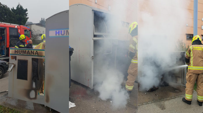 19.12.2019 ob 13.06 je na Rojski cesti v Domžalah gorela vsebina zabojnika za rabljena oblačila podjetja Humana.