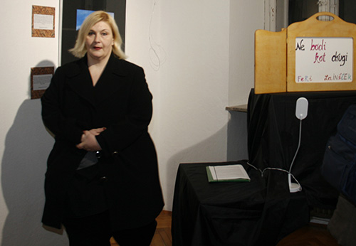 Poleg uvodnih besed županje mag. Olge Vrankar, ki je predstavila tokratno avtorico fotografij je spregovorila tudi avtorica sama. Z Lukovico predvsem z gradom Brdo jo povezuje neka simpatija, saj je bila dolga leta v knjižnici Šentvid in tudi tokrat ni mogla iz svoje kože, saj je spregovorila o svojem delu v knjižnici. Poleg branja je priporočila tudi druge oblike sodelovanja, ki jih v knjižnici ni malo s številnimi novimi projekti, ki jih pripravljajo. Na ogled so bile tudi zanimive razglednice Lukovice in okolice iz domoznanske zbirke, ki se nahaja v knjižnici v Domžalah in nekatere izmed njih nosijo letnico 1903. Kot zanimivost naj navedem, da so bile vse razglednice tudi odposlane in imajo s tem toliko večjo vrednost. Seznanila nas je še s kulturo prinešeno iz daljnega vzhoda, z gledališčem kamišibaj (jap. kami: papir, šibaj: gledališče), ki je posebna oblika pripovedovanja zgodb ob slikah. Slike, avtorica jih je narisala sama, so vložene v lesen oder, imenovan butaj. Pripovedovalec (kamišibajkar) ob pripovedovanju menja slike, ki prikazujejo dogajanje v zgodbi, a tokrat nam ni pripovedovala zgodbe Ferija Lainščka Ne bodi kot drugi, ampak nam jo je zapela. Čudovit večer smo po ogledu zaključili ob prijetnem druženju v spodnjih prostorih Pungartnikove hiše.