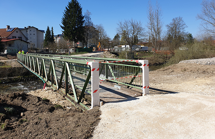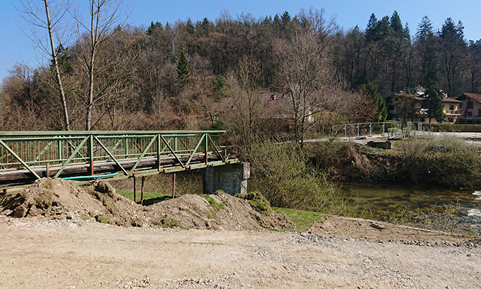 Most (brv) za pešce in kolesarje čez Kamniško Bistrico pri Šumberku v Domžalah – 19.3.2020