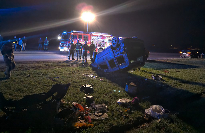 Po prihodu na kraj nesreče smo poleg protinaletne in protipožarne zaščite nudili prvo pomoč huje poškodovani osebi ter enemu lažje poškodovanemu.