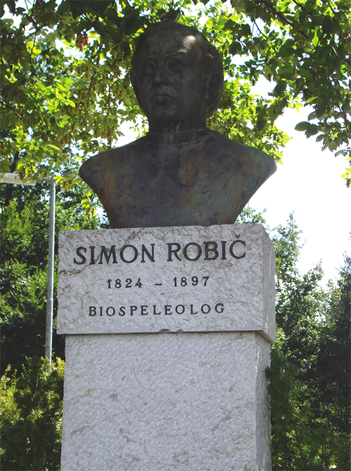 Kip v čast Simonu Robiču, ki je med leti 1856 in 1859 kaplanoval v Dobu, kot biolog pa je raziskoval kraške jame domžalsko-moravškega osamelega krasa.