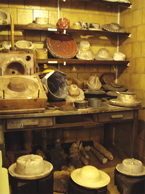 Kalupi za klobuke, katere so segreli in čeznje poveznili slamnik, da je dobil in ohranil želeno obliko.