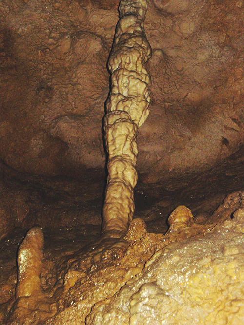 Največji stalagmit v Železni jami, na katerega so jamarji zelo ponosni.