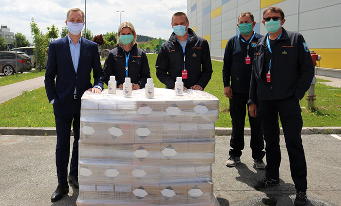 Poveljnik Civilne zaščite Občine Domžale Marko Žagar se je ob prevzemu na sedežu podjetja direktorju zahvalil za to čudovito gesto in omenil, da bodo preostanek razkužil posredovali ZD Domžale, Domu starejših občanov, MGC Bistrica ter Zavodu za pomoč in nego na domu Comett.