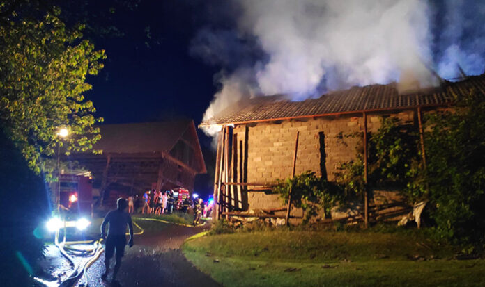 V naselju Vrhovlje v občini Lukovica zagorelo gospodarsko poslopje