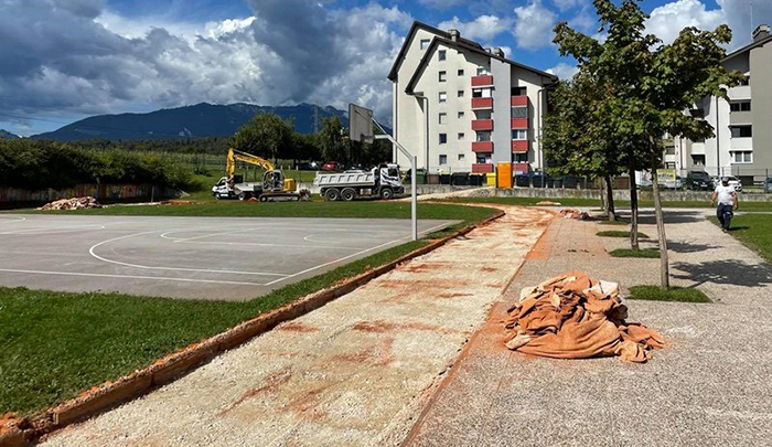 Foto utrinki gradbenih del v športnem parku pri Osnovni šoli Marija Vere: