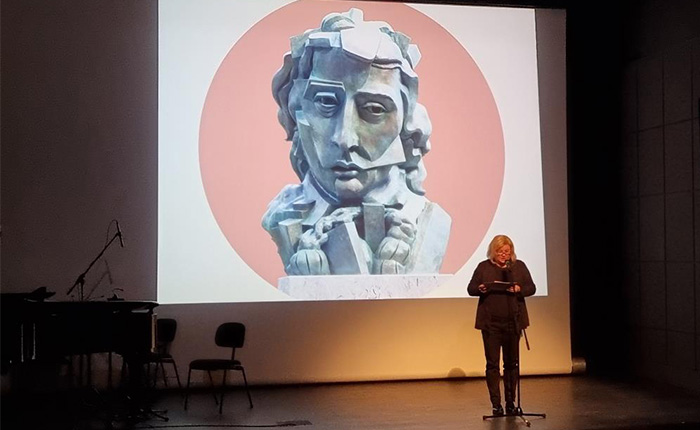 Slavnostna govornica je bila mag. Nina Mav Hrovat. V svojem nagovoru se je seveda usmerila v kulturo ter izpostavila, da je kultura zares vse okoli nas. Kultura niso samo glasba, gledališče, film in podobno, kultura je tudi naš odnos do vsega, kar nas obdaja; pa naj bodo to ljudje, živali ali narava. Izpostavila je tudi, da se je odnos do kulture v času korona virusa popolnoma spremenil in da tudi umetniki s svojimi ustvarjalnimi deli kažejo ogledalo družbi. V svojem govoru je spregovorila tudi o pomembnosti jezika, besed in vrednostjo slovenskega jezika. Od publike se je poslovile s svojo čudovito pesmijo Besede. Po govoru je sledila projekcija nemega filma Erotikon, ki se mu na odru pridruži še Andrej Goričar z zasedbo Orchestra of the imaginary, skupek katerega je pravo glasbeno doživetje.