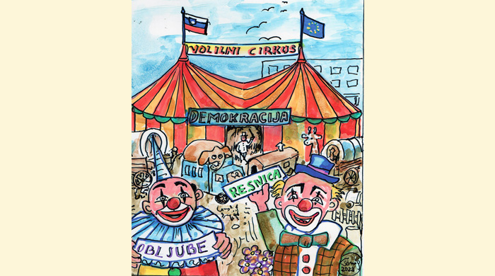 Volilni cirkus je pričel svoje potovanje. Lastniki posameznih ciganskih voz so med čakanjem na začetek natrenirali svoje konje, slone, bevskajoče pudlje in opice, ki ubogajo na ukaz, mnogi reagirajo samo na bič, odvisno od dreserja. Cirkus se je torej premaknil, žonglerji in akrobati so oblekli najbolj bleščeče kostume, klovni pa so se našminkali z močno vpadljivimi barvicami. Vse zato, da storijo nekaj dobrega za narod – pravijo.