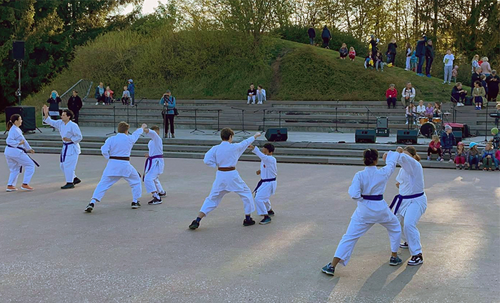 Nastop atomovcev ob 70. občinskem prazniku mesta Domžale, se je ob naslovu organizatorja, ”Spoznajmo se”, odvil v Češminovem parku, pred polno gledalci, ki so lahko občudovali karate nastop šolskih pasov, vrlih karateistov in karateistk, ki so se bili ob velikem številu predstavnikov različnih kulturnih in športnih dejavnosti, pripravljeni izpostaviti pred domžalsko publiko.