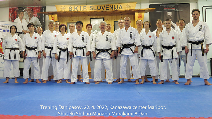 Sensei Murakami, se je na povabilo SKIZ Slovenije, Shihan Čeriča 8.Dan Hanshi, v Slovenijo vrnil 21. 4. 2022, po dolgih petih letih, (julij, 2017, Izola). Organizirana aktivnost je potekala, najprej dva dni v Kanazawa centru Maribor, četrtek reprezentančne priprave, A in B reprezentance, petek Yudansha-kai trening črnih pasov. V soboto in nedeljo sta potekali celodnevni aktivnosti v Ruški športni dvorani, kjer je bil seminar odprtega, mednarodnega tipa, katerega so se udeležili predstavniki, Avstrije, Madžarske, Rusije, Belgije in seveda Slovenije. Sensei Murakami, je vlogo glavnega inštruktorja SKIFederacije, nedvomno upravičil in dokazal, da je veliki karate učitelj, Soke Kanazawa 10.Dan pri izbiri naslednikov, imel popolnoma prav. Sensei iz Japonskega in svetovnega SKIF Centra, se je karateja dotaknil prav v srž osnov, razložil določene razlike med posameznimi organizacijami in zadovoljil, tako mlajše kot starejše. Pokazal je pot, kako s pozameznimi klasičnimi vadbenimi prvinami kihona, nadgraditi motoričnost in harmonijo gibov in s tem v prosti borbi – kumiteju, postati hitrejši in učinkovitejši. V popolnosti sta bili obdelani mojstrski kati Bassaidai, Kankudai in v začetku Heian Sandan. V soboto in nedeljo, sta se v sklopu razdelitve treninga po pasovih, vključila Shihan Čerič 8.Dan in glavni inštruktor Belgije, Sensei Qastrikue 6.Dan.