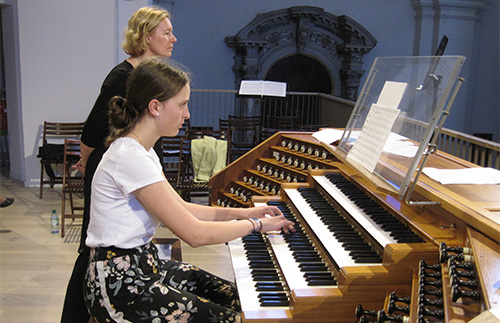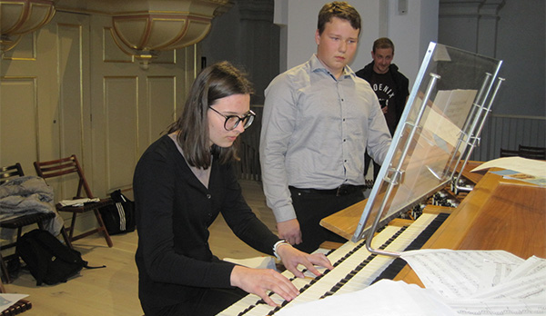 Na ta čudovit inštrument kraljici glasbil so zaigrali učenci Klara, Jošt, Neža, Ana, Rozalija in Miha. Za popestritev koncerta so nastopili še Anže s trobento, Manca s flavto in Maja, ki nam je zapela. Kljub temu, da so učenci orgel šele na začetku svojega učenja, jim je na prošnjo Veronike Šarec, koprska ekipa ugodila in tako so znamenite orgle spoznali od blizu. Predstavili so se učenci orgel Veronike Šarec in sicer Neža in Jošt, ki sta začetnika, Rozalija in Klara obiskujeta drugi razred orgel, Miha se pa po 4 letih ob orglah počuti že kar domače. Pri igranju se je Neži pridružila še sestra Ana in sta zaigrali štiriročno. Pri skladbah: Gerbičevi Ave Mariji in Francovem Panis angelicusu je Maja zapela v duetu z njeno mentorico Urško Urbanija Žun, na orglah ju je spremljala korepetitorka Neža Žgur. Na koncu koncerta še iskrena zahvala stolnemu župniku dr. Primožu Krečiču, zborovodji Miranu Bordonu in organistu Mirku Butkoviču za izkazano zaupanje, prijazen sprejem, pomoč in možnost muziciranja na izjemnih stolnih orglah. Oni predstavljajo del ekipe, ki se je nekaj let trudila in vse moči namenila projektu pridobitve in postavitve novih orgel. In ker so res čudovita publika, je Miha Zavrl zaigral za dodatek Bedartove Variacije na Christus vincit.