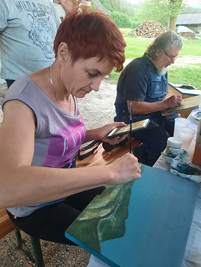 Člani Likovnega društva Mengeš smo se 6. junija na ponedeljek odpravili k čebelarju Boštjanu Romšaku v Podjelše pri Mekinjah.