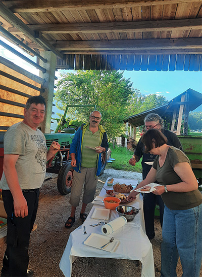 Člani Likovnega društva Mengeš smo se 6. junija na ponedeljek odpravili k čebelarju Boštjanu Romšaku v Podjelše pri Mekinjah.