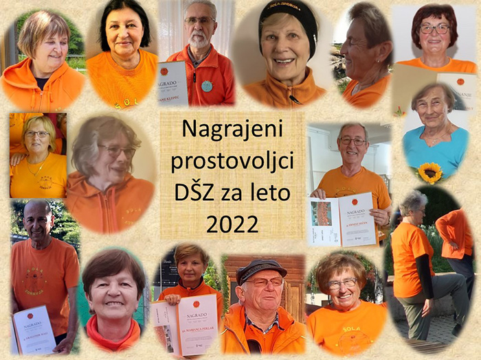 Društvo Šola zdravja (DŠZ) na svojem vsakoletnem zboru članov podeli nagrade in priznanja najbolj zaslužnim članom prostovoljcem društva za preteklo leto. Letošnje nagrade in priznanja so prejele osebe, ki izstopajo iz povprečja in prispevajo k viziji in poslanstvu Društva Šola zdravja, izražajo svojo pripadnost društvu in njegovemu delovanju, prispevajo k širitvi njegovega programa in njegovi promociji. Prejemniki nagrade za izjemne dosežke v letu 2022 so naslednji prostovoljci, člani Društva Šola zdravja: Dane Klepec (Dragatuš, občina Črnomelj), Metka Štok (Kranj – Prešernov gaj), Franc Habe (Domžale – drevored 88 lip) in Ana Podržaj (Ig), Milevka Jurković (Vrhnika), Ernest Sečen, (Brežice), Darinka Ban (Dravograd), Ana Ponikvar (Novo mesto – Birčna vas), Slavka Barbo (Novo mesto – Mali Slatnik), Marjanca Peklar (Novo mesto – Portoval 1), Jožica Farasin (Ruše – Bezena), Dragomir Mali (Sežana), Neža Kurnik (Hajdina – Slovenska vas), Marija Vehovec (Ljubljana – Vič), Marija Orešnik (Ljubljana – Brinje) in Erna Babnik (Ljubljana – Polje). Prejemnici priznanja Društva Šola zdravja pa sta: Ljuba Orel (Ljubljana – Koseški bajer) in Marija Tibaut (Čerensa, občina Črenšovci).
