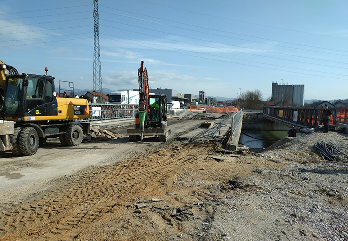 Začela so se rušitvena dela na mostu čez Kamniško Bistrico v Domžalah, ki je bil močno poškodovan v lanskoletnih avgustovskih poplavah. Promet med rušenjem poteka nemoteno po dveh montažnih mostovih.