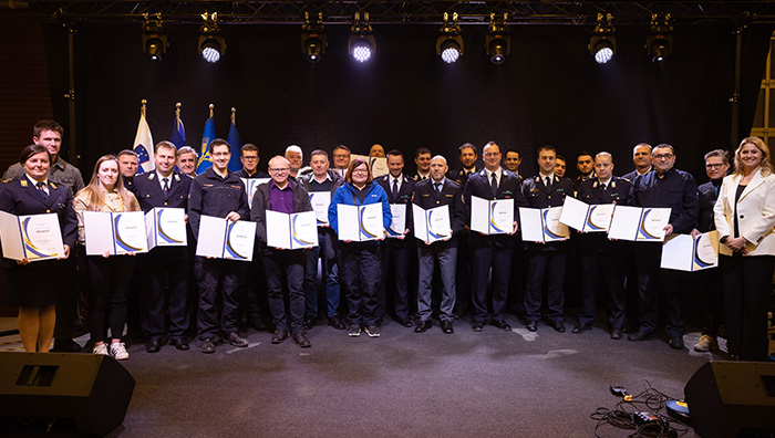 Med prejemniki zahval je bila tudi 151. helikopterska eskadrilja Slovenske vojske, ki je v času poplav avgusta lani sodelovala s Civilno zaščito Občine Domžale in nudila nepogrešljivo pomoč pri odpravljanju posledic poplav in zaščiti ljudi in premoženja.
