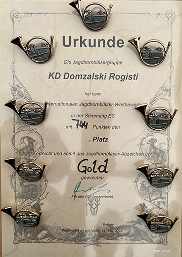 Tako smo lani merili moči na 3. EP lovskih rogistov v Nemčiji, pred tem na mednarodnem tekmovanju na Slovaškem, pa leto pred tem na 2. EP lovskih rogistov na Slovaškem ter tekom 33-letnega obstoja na različnih mednarodnih tekmovanjih v Avstriji in na Češkem.