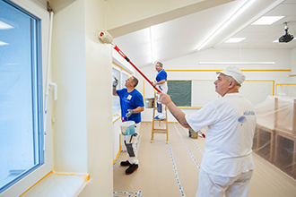 Humanitarni slikopleskarji v sveže barvne odtenke odeli učilnice v osnovni šoli v Dolu pri Ljubljani