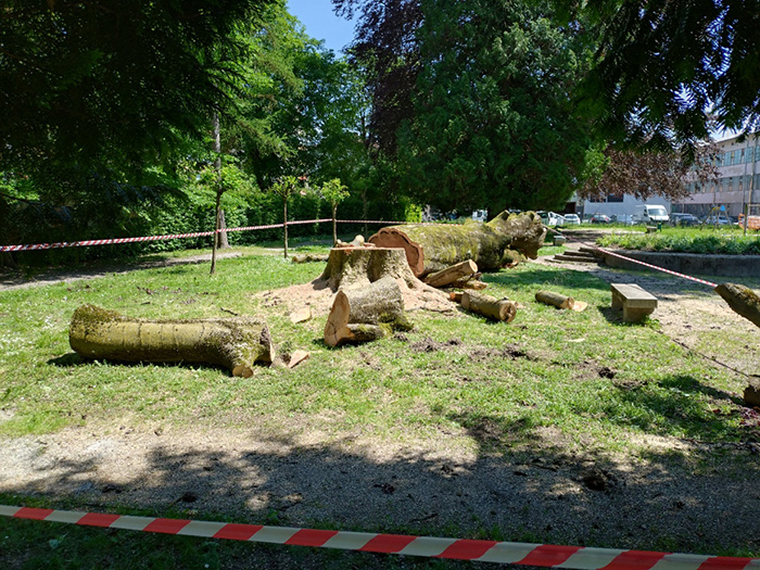 V Domžalah se nadaljuje odstranjevanje zdravih stoletnih bukev. Park, ki naj bi bil srce zelenega središča mesta, postaja prostor z vedno manj drevesi. Park bi se moral prilagajati drevesom, ne pa da se drevesa prilagajajo parku.