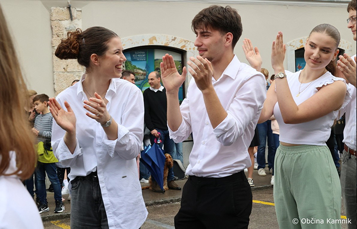 V četrtek, 23. maja 2025, so se maturantke in maturanti Gimnazije in srednje šole Rudolfa Maistra Kamnik s tradicionalno četvorko simbolno poslovili od srednješolskih klopi. V središču Kamnika so s plesom in smehom napolnili Glavni trg ter obeležili pomemben prehod iz mladostniških let v odraslost. Ob tej posebni prelomnici sta jim popotnico v svet zaželela podžupanja Občine Kamnik, Romana Učakar, in ravnatelj GSŠRM, dr. Branislav Rauter. Pristen pečat dogodku so dodali tudi starši, stari starši ter prijatelji maturantov, ki so z veseljem spremljali plesne korake svojih mladih in obujali spomine na njihovo srednješolsko pot.