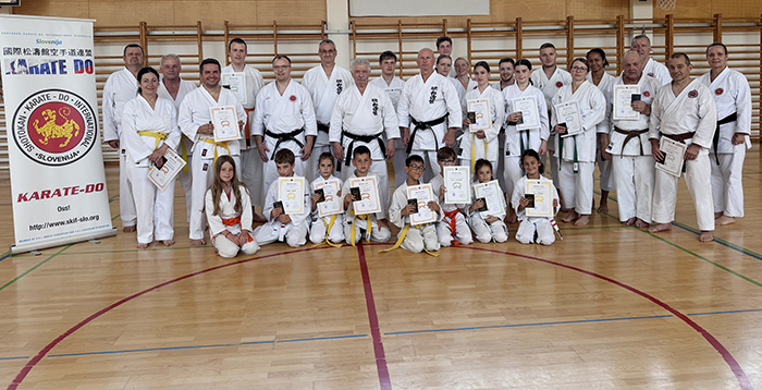 V nedeljo, po zadnjem treningu, so bili organizirani izpiti za opravljanje višjih Kyu pasov. Iz Domžal so uspešno opravili, Stela Vrtačnik 10.Kyu, Jakob Ložar, Zoja Kordež, 8.Kyu, Za oranžni pas, 7.Kyu so uspešno opravili, Amela Šumić, Zala Zupan, Miha Zupan, David Markovič Ukmar, Oskar Granfola, dr. Angelina Blaževska. Nikolaj Radonjić, Oskar Vrtačnik za zeleni pas, 6.Kyu. Za 5.Kyu, modri pas sta bili uspešni, prof. Barbara Gramc Vodopivec, Sofija Jović.