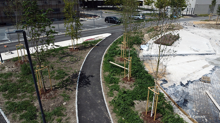 V preteklem tednu je izvajalec del družba GP Resnik, d. o. o. nadaljeval z deli ureditve športnih, prometnih in drugih zunanjih površin na območju UN K9 Šole.