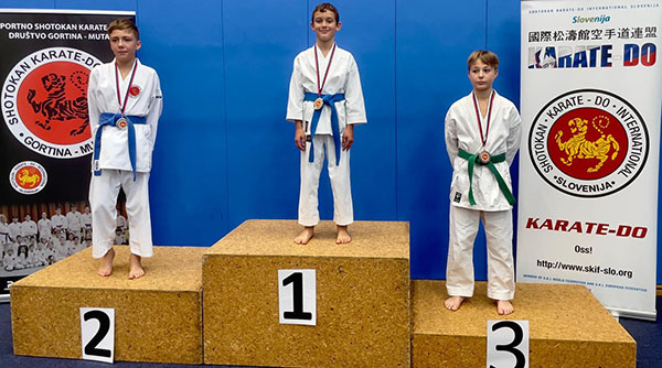 Jakob Ložar, se je domov vrnil z štirimi medaljami: drugo mesto kate posamezno, prvo mesto ekipno sanbonkumite in dve medalji kate ekipno.