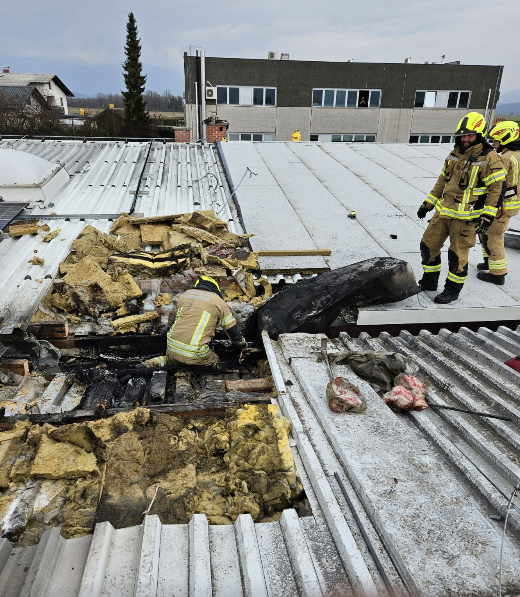 V torek, 24.2.2026 ob 10:47 smo bili preko ReCO Ljubljana obveščeni o požaru v strehi na industrijskem objektu na Gorenjski cesti v Mengšu. Izvozili smo z voziloma GVGP-1 in GVC-1 ter šestimi operativnimi gasilci. Na kraju intervencije smo skupaj z gasilci PGD Mengeš, PGD Topole in PGD Kamnik najprej izvedli evakuacijo zaposlenih in locirali požar v strehi.