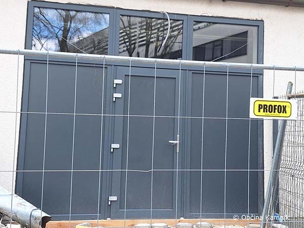 Na delu objekta št. 2080 (Glasbena šola) je izvajalec izvajal rekonstrukcijo ravne strehe nad vhodom v telovadnico in garderobami ter vgradil nova ALU vhodna vrata na vhodih v telovadnico.