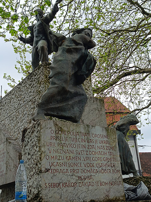 Vsebina: Na spomeniku so vklesani verzi pesnika Mileta Klopčiča.